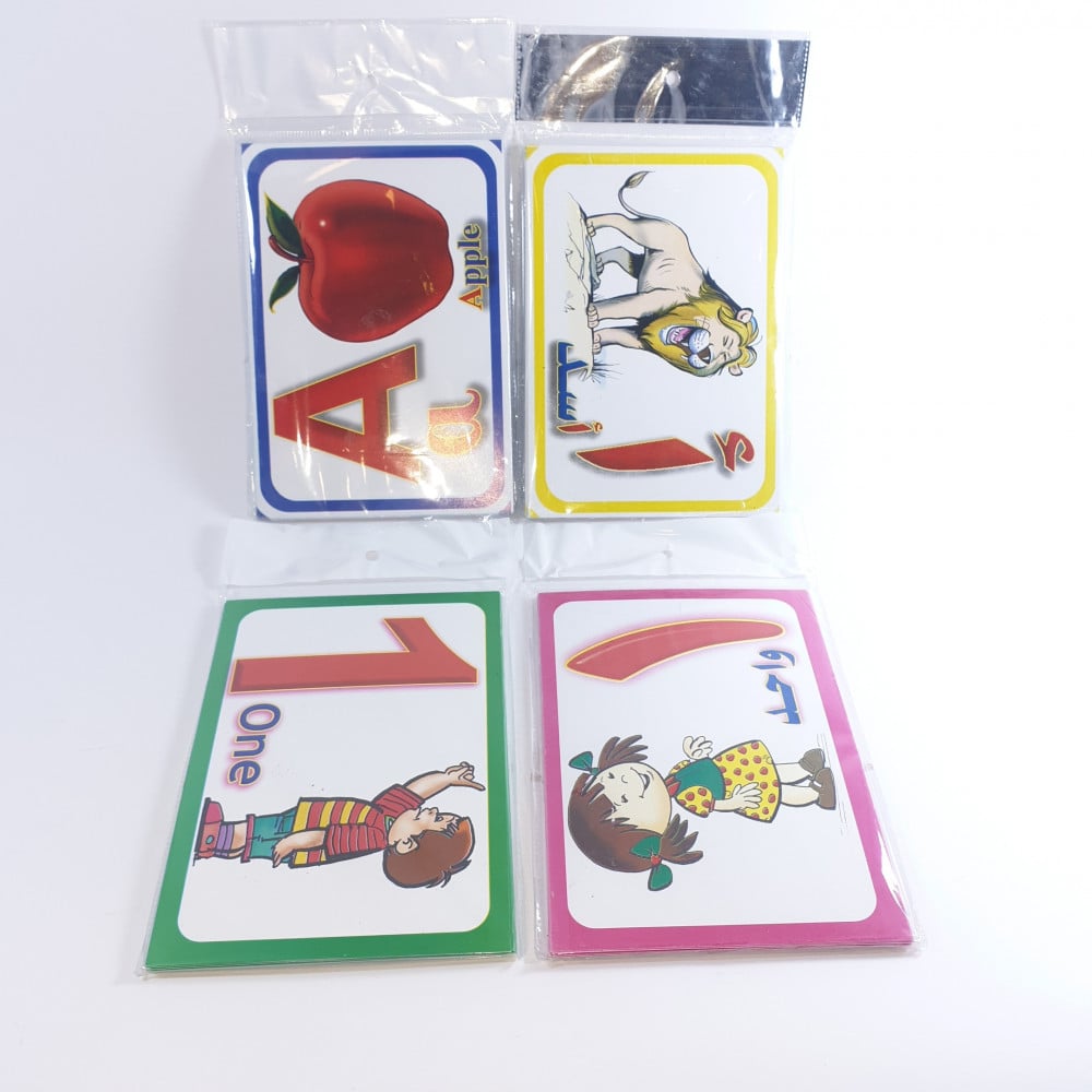 بطاقات تعليمية أربع مجموعات من البطاقات (حروف عربي ، أرقام عربي ، حروف إنجليزي ، أرقام انجليزي), انها مجموعة مميزة من البطاقات التعليمية المميزة, فقد أثبت العلماء أن الأشياء الحسية الملموسة من أكثر الأشياء تعلق في ذهن الانسان, فاذا كنت ترغبين في تعليم طفلك العديد من المهارات والحروف المختلفة جئنا إليكم بمجموعة مميزة من البطاقات الملونة المصنوعة بكل عناية ودقة من خامات عالية الجودة, إحصل عليها من خلال متجرنا, يمكنك الحصول عليها عن طريق الشحن والتوصيل لأي مكان