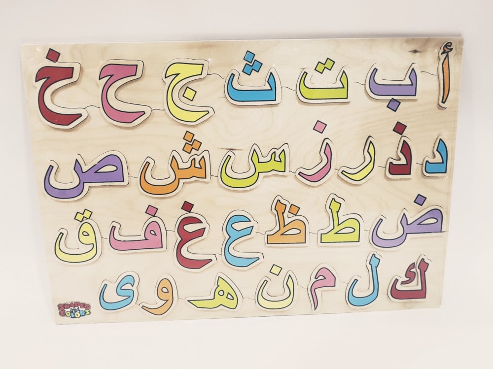 • بزل الحروف العربية , لعبة مميزة تساعد في زيادة المهارة الحركية للطفل عن طريق تركيب الأجزاء .